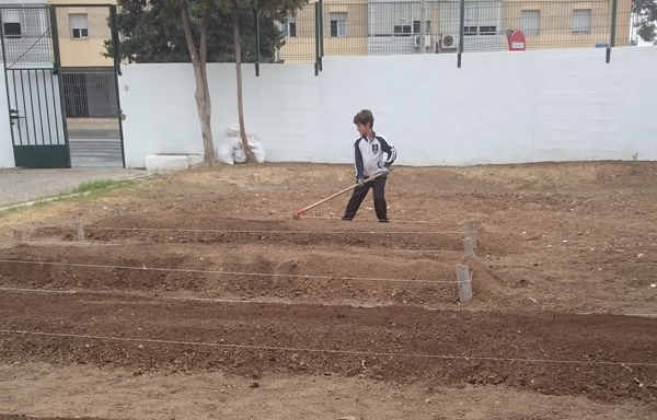 Los relatores y relatoras del CEIP Andalucía hemos realizado un reportaje gráfico del proceso de recuperación del huerto de nuestro colegio y de la construcción del 'Meteorito polinizante' que ayudará a mantener sano todo lo que cultivemos. En la primera imagen, vemos a un compañero del tercer ci